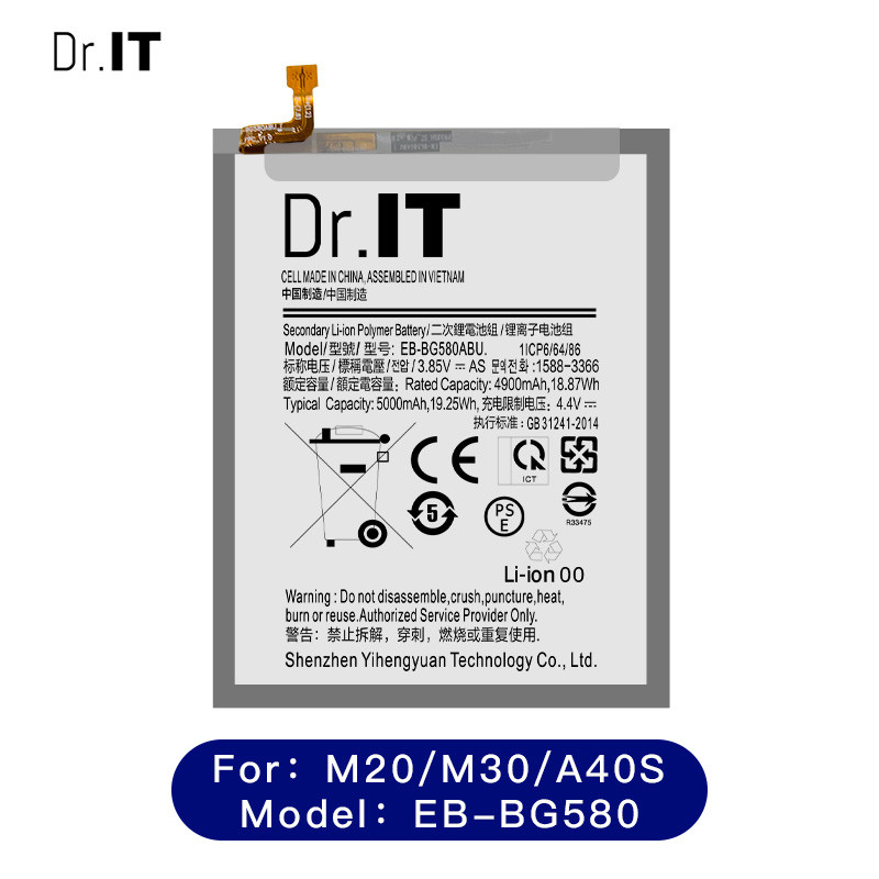| Nom de produit: | Batterie de Samsung M20/M30/A40S | Tension nominale: | 3.85V |