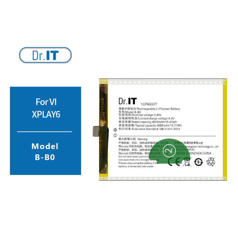 | Nom de produit | Batterie de polymère de Li-ion de la capacité élevée 4000mah B-B0 de Dr. IT Factory Wholesale Oem pour le remplacement de Vivo XPLAY6 |